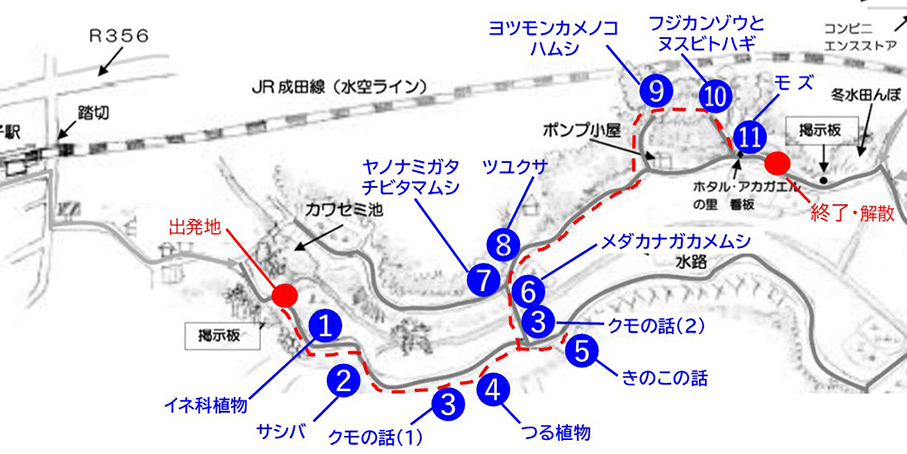 当日の観察ルート(我孫子市HPより改変)
